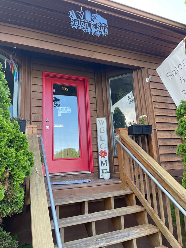 Once on Sailors Drive- Turn Right into the tan and stone office buildings (Large green Country Financial Sign) and we are the last office next door to Safe Choice Pregnancy Center. You will see a large metal welcome sign on the porch and a small sign hanging saying "salon and Spa"
